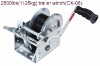Name: trailer winch/2500lbs boat winch/hand Winch /trailer winch/ two speed winch ,with shaft shift lock design, easily change the gearratiowithout moving the crank handle from shaft to shaft. Item No.:W2500E (CX-08) Max tracking capacity:2500LBS Gear Ratio:5:1 & 12:1 Rachet Type:Two Way Zinc Plated/Powder Coated/Dichromate Handle Length:230mm Drum-Hub Dia:24mm Size of Strap:50mm*7.38m N.W:15kgG.W:16.5kgPacking:Carton BoxPacking Size:41*24*26cm/2pcs20ft:1960pcs